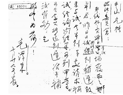 在臺(tái)灣國民黨黨史館館藏檔案中收有大量第一次國共合作時(shí)期的中共領(lǐng)導(dǎo)人文獻(xiàn),其中包括毛澤東、周恩來、惲代英等一大批早期中共領(lǐng)導(dǎo)人的文稿。關(guān)于這些珍貴的文獻(xiàn)資料,雖經(jīng)學(xué)者多次介紹,但是仍有一些珍貴的資料不為大家所知。前不久,筆者赴該館查閱資料,偶然發(fā)現(xiàn)了一封毛澤東的親筆信函,這封親筆信函保存在編號(hào)為“漢15004號(hào)”的《中秘處致政治委員會(huì)函》的原始檔案中,為毛筆書寫原件。這封信函很短,沒有收錄進(jìn)《毛澤東年譜》等權(quán)威著作。現(xiàn)全文照錄如下: