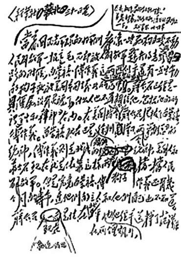 1948年10月31日,毛澤東為新華社撰寫(xiě)的述評(píng)《評(píng)蔣傅軍夢(mèng)想偷襲石家莊》的手稿