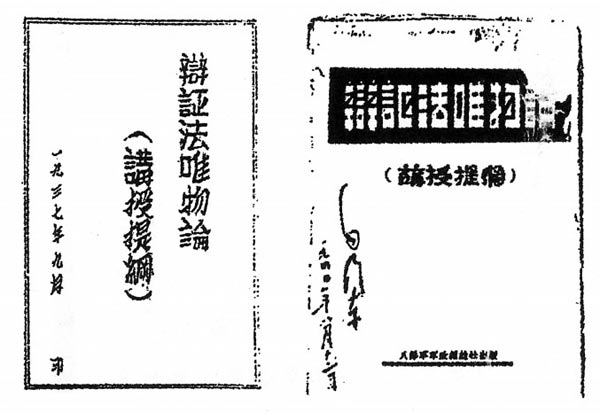圖三是中央檔案館收藏的《辯證法唯物論(講授提綱)》的油印件和鉛印件的封面,至今保存完好。