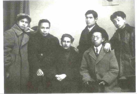 1923 年4 月,任弼時(左1)與羅亦農(nóng)(左2)、張國燾(左4)、劉仁靜(左5)等在莫斯科