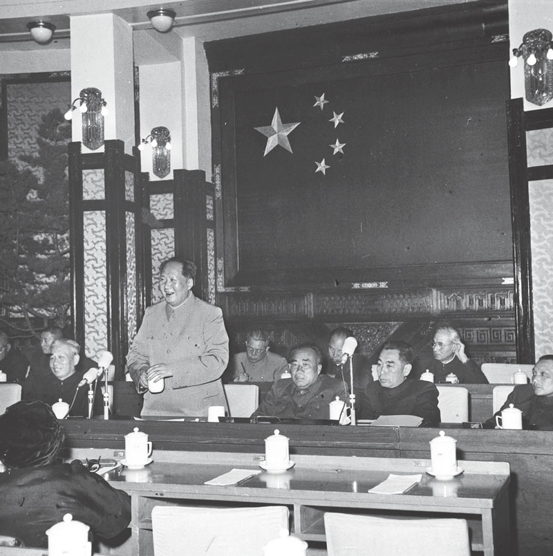 從1955年下半年到1956年初,我國(guó)生產(chǎn)資料的社會(huì)主義改造進(jìn)入高潮,社會(huì)主義經(jīng)濟(jì)建設(shè)也有了幾年的實(shí)踐經(jīng)驗(yàn),對(duì)于蘇聯(lián)經(jīng)濟(jì)建設(shè)中的一些缺點(diǎn)和問題也逐步有所了解。以蘇為鑒,總結(jié)自己的經(jīng)驗(yàn),探索一條適合中國(guó)國(guó)情的建設(shè)社會(huì)主義道路的任務(wù),已經(jīng)擺在黨的面前。毛澤東關(guān)于十大關(guān)系的思想,就是在這樣的背景下產(chǎn)生的。圖為1956年5月2日,毛澤東在最高國(guó)務(wù)會(huì)議上進(jìn)一步闡述十大關(guān)系。 新華社發(fā)(資料照片)