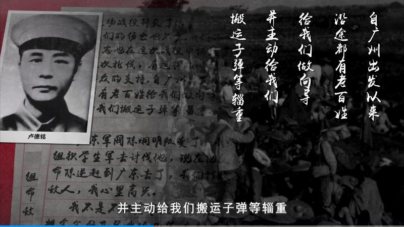 “這場戰(zhàn)役殲滅了很多敵人,但是我們的傷亡也不少。我們的營長曹淵同志也在這次戰(zhàn)役中犧牲了。我們這次北伐,有這樣的順利進軍,全靠群眾的支持。自廣州出發(fā)以來,沿途都有老百姓給我們做向?qū)В⒅鲃咏o我們搬運子彈等輜重。”
