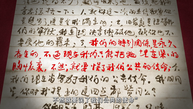 “就是我們的感情也要社會化,不要把對于私人感情的熱烈,超過對于團體感情的熱烈。”“我們的特別關(guān)系是永久存在的,不過現(xiàn)在我們只能把牠埋在深深的胸懷里。不然就要誤了我們公共的使命”。
