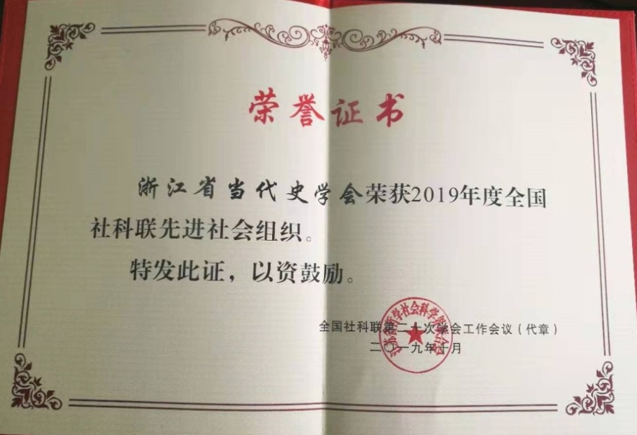浙江省當(dāng)代史學(xué)會(huì)獲全國社科聯(lián)先進(jìn)社會(huì)組織榮譽(yù)稱號(hào)