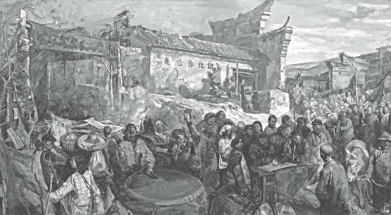 土地改革后,多數(shù)農(nóng)民的生產(chǎn)、生活條件雖有改善,但由于資金、耕畜、農(nóng)具缺乏或勞動(dòng)力不足,擴(kuò)大再生產(chǎn)仍有許多困難,更經(jīng)不起天災(zāi)人禍的襲擊。為了克服一家一戶(hù)生產(chǎn)所遇到的困難,真正造福農(nóng)民,毛澤東又要求打破小農(nóng)經(jīng)濟(jì)的桎梏,把農(nóng)民組織起來(lái),引導(dǎo)他們走互助合作的道路。