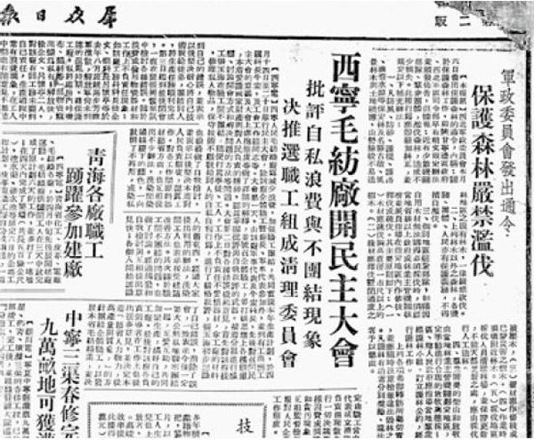 刊登于1950 年5 月11 日《群眾日?qǐng)?bào)》上的西北軍政委員會(huì)關(guān)于《保護(hù)森林嚴(yán)禁濫伐》的通令