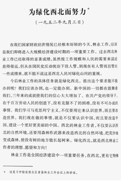 習(xí)仲勛在西北區(qū)首屆林業(yè)工作會(huì)議上的講話(huà)《為綠化西北而努力》(收入《習(xí)仲勛文集》)