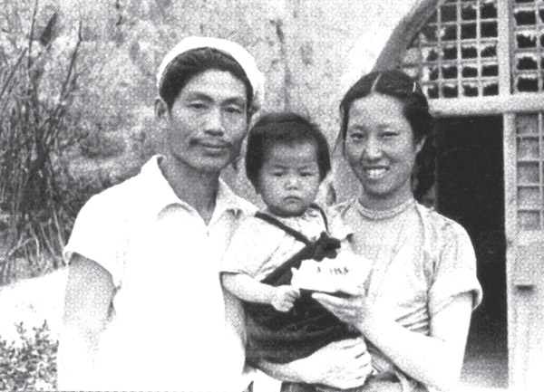 1945年,蕭軍、王德芬夫婦與女兒蕭耘在延安橋兒溝東山