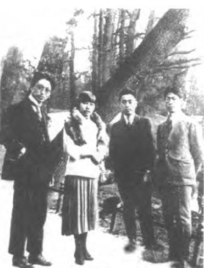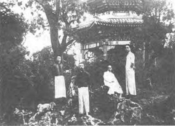 張申府 (右一) 、李大釗 (右三) 、梁漱溟 (右二) 、雷國能 (右四) 在中央公園合影。