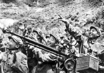 抗美援朝時(shí)中國(guó)人民志愿軍打下美國(guó)飛機(jī)的情形。