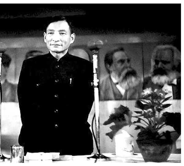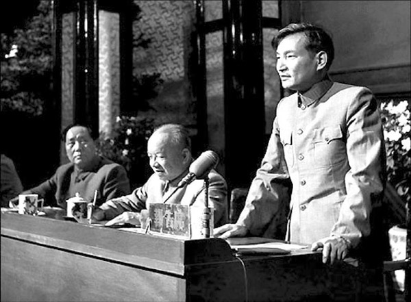 1 9 5 4 年6月17日,陳云在中央人民政府委員會第31次會議上作關(guān)于國家財政預算問題的報告,左一為毛澤東