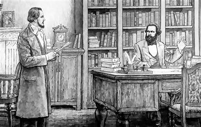 《寫作〈共產(chǎn)黨宣言〉》(中國畫)苗再新 作