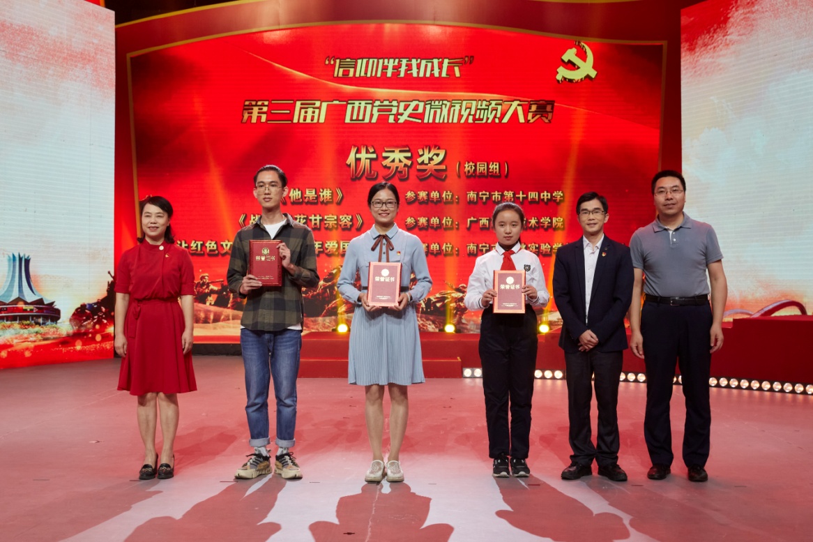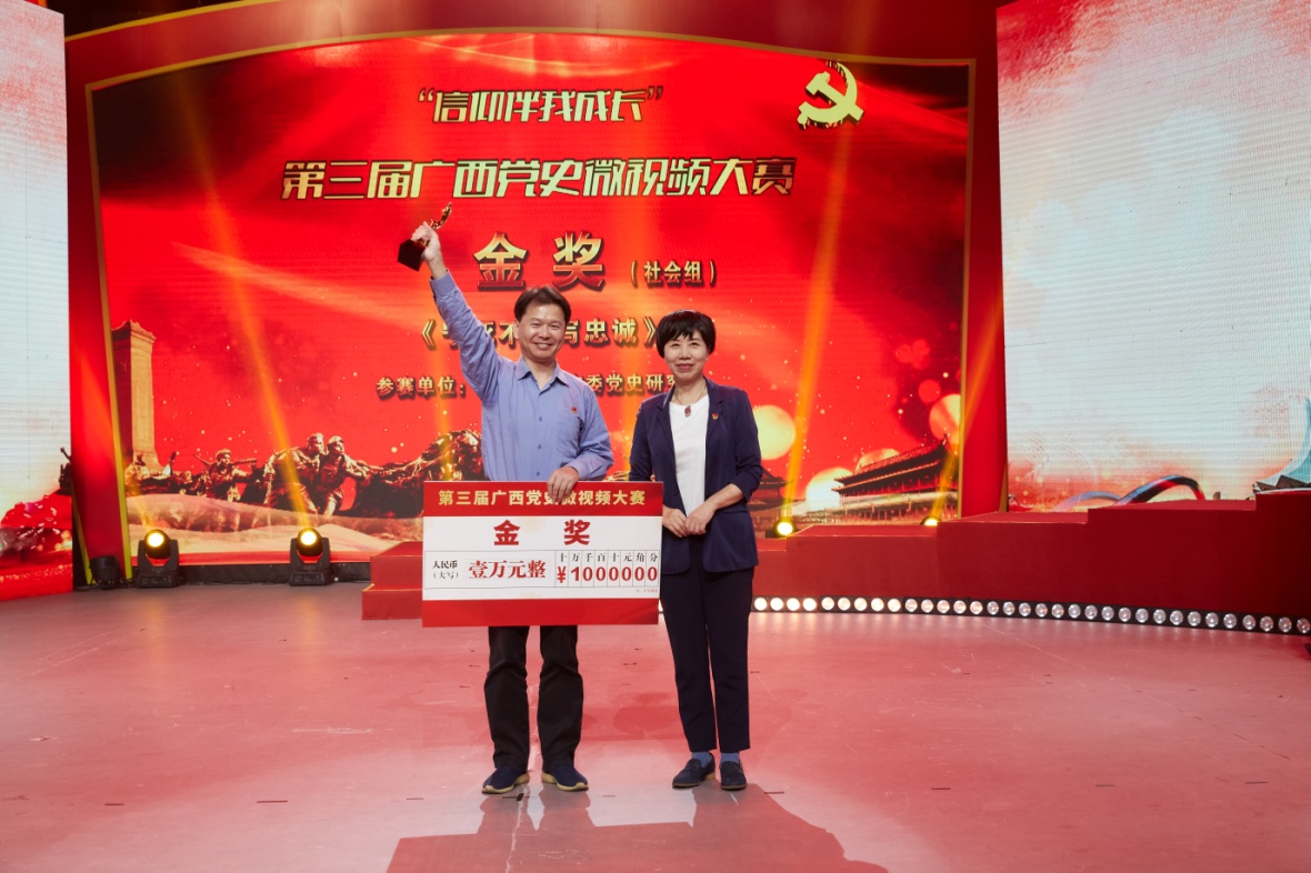 2020年10月28日,由廣西壯族自治區(qū)黨委黨史研究室、廣西壯族自治區(qū)文化和旅游廳、廣西廣播電視臺聯(lián)合主辦的“信仰伴我成長”第三屆廣西黨史微視頻大賽頒獎典禮在廣西南寧舉行。廣西壯族自治區(qū)黨委黨史研究室副主任向濟萍、廣西壯族自治區(qū)文化和旅游廳副廳長謝日萬、廣西廣播電視臺副臺長龐通致辭并為獲獎選手頒獎。