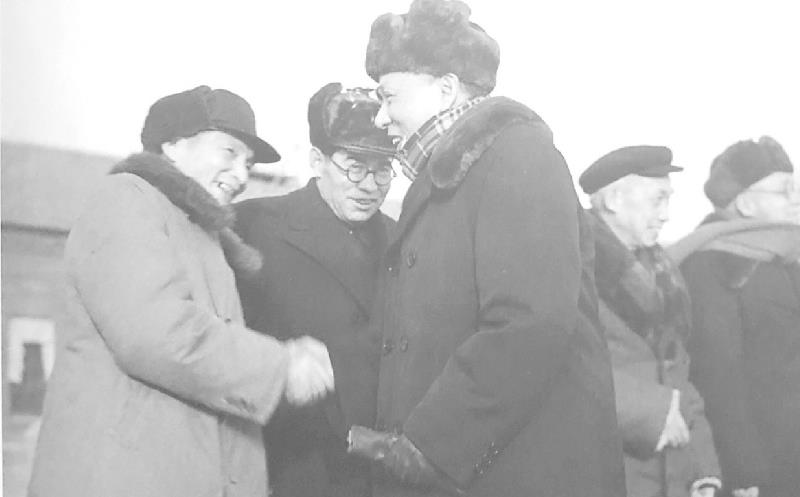 1953年1月11日,陳云等在北京西郊機(jī)場迎接由劉少奇率領(lǐng)的出席蘇共十九大的中共代表團(tuán)回國
