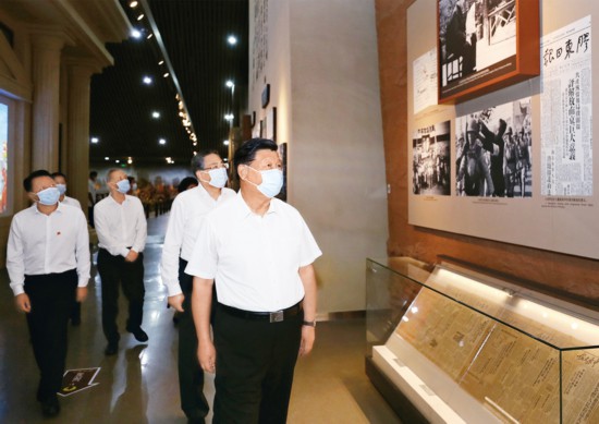 2020年8月18日至21日,中共中央總書記、國家主席、中央軍委主席習近平在安徽省考察。這是19日下午,習近平在合肥市參觀渡江戰(zhàn)役紀念館,重溫革命歷史,緬懷革命先輩的豐功偉績。 新華社記者 鞠鵬/攝