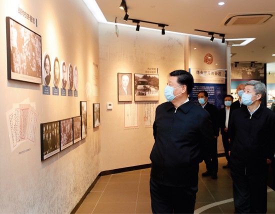 2020年4月20日至23日,中共中央總書記、國家主席、中央軍委主席習(xí)近平在陜西考察。這是4月22日,習(xí)近平在西安交通大學(xué)交大西遷博物館參觀。 新華社記者 鞠鵬/攝