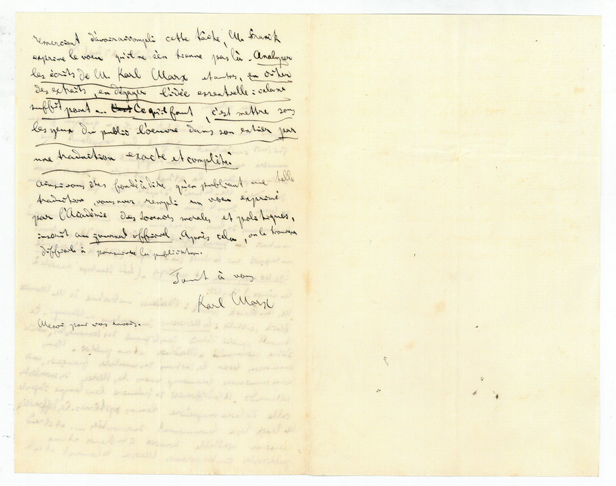 [編者按]2021年2月5日,中央黨史和文獻(xiàn)研究院在京舉行“馬克思六封書信手稿原件入藏儀式”。這六封書信是馬克思致《資本論》法文版出版人拉沙特爾和奧里奧爾的書信手稿,均為從未公開發(fā)表過的珍貴文獻(xiàn),具有很高的文獻(xiàn)價(jià)值和學(xué)術(shù)價(jià)值。在信中,馬克思就《資本論》法文版的翻譯、出版、傳播等事宜與拉沙特爾和奧里奧爾進(jìn)行了討論。這里刊發(fā)的是六封書信原稿和譯文,供學(xué)習(xí)研究參考。