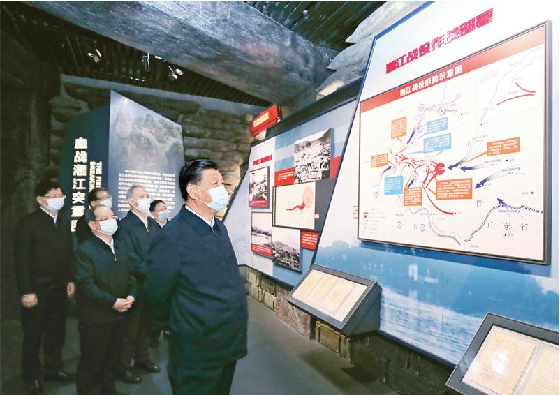 2021年4月25日至27日,中共中央總書記、國家主席、中央軍委主席習近平在廣西考察。這是25日上午,習近平在桂林市全州縣,參觀紅軍長征湘江戰(zhàn)役紀念館。 新華社記者 鞠鵬/攝