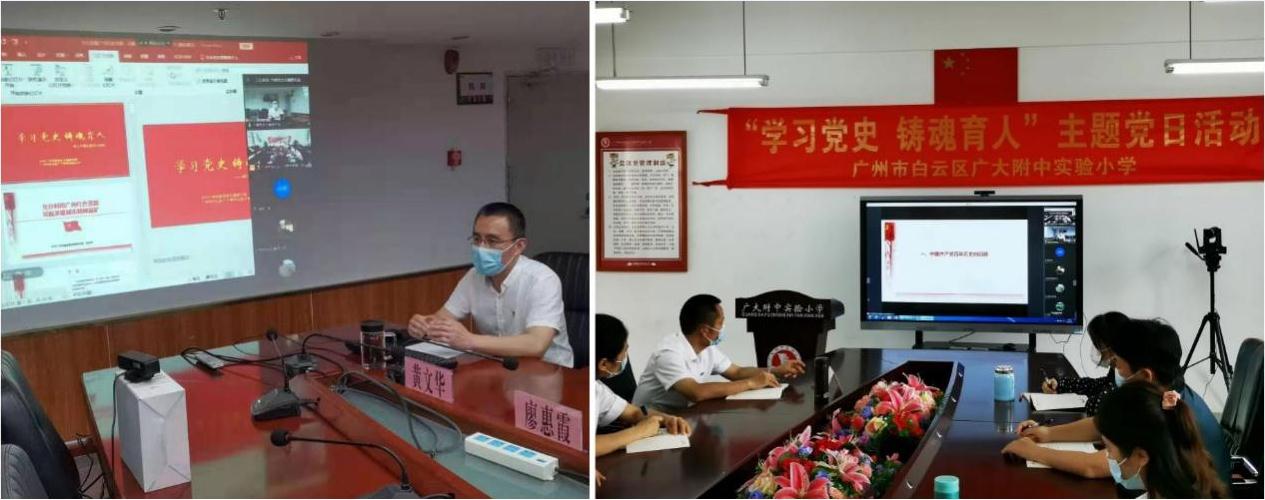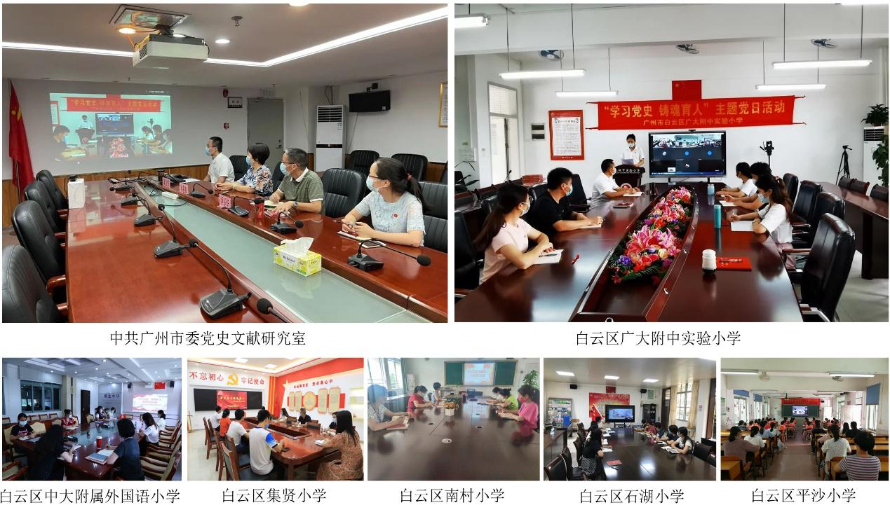 為貫徹落實(shí)習(xí)近平總書記在黨史學(xué)習(xí)教育動(dòng)員大會(huì)上的重要講話精神,推進(jìn)黨史教育進(jìn)校園,6月2日下午,廣州市委黨史文獻(xiàn)研究室與廣州市白云區(qū)廣大附中實(shí)驗(yàn)小學(xué)、白云區(qū)中大附屬外國(guó)語小學(xué)、白云區(qū)集賢小學(xué)、白云區(qū)南村小學(xué)、白云區(qū)石湖小學(xué)、白云區(qū)平沙小學(xué)等六所小學(xué)聯(lián)合開展“學(xué)習(xí)黨史 鑄魂育人”主題黨日活動(dòng),參加活動(dòng)的黨員及師生共721人。廣州市委黨史文獻(xiàn)研究室副主任廖惠霞、黨史研究部全體黨員參加活動(dòng)。因新型冠狀肺炎病毒疫情防控需要,活動(dòng)采取線上形式進(jìn)行,在廣州市委黨史文獻(xiàn)研究室和白云區(qū)廣大附中實(shí)驗(yàn)小學(xué)各設(shè)一個(gè)主會(huì)場(chǎng),其他學(xué)校設(shè)分會(huì)場(chǎng)。