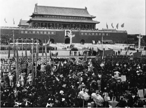1949年9月,中國(guó)人民政治協(xié)商會(huì)議第一屆全體會(huì)議在北平隆重舉行。會(huì)議圓滿完成了創(chuàng)建中華人民共和國(guó)的光榮使命。10月1日,30萬(wàn)軍民齊集天安門廣場(chǎng),舉行開國(guó)大典。