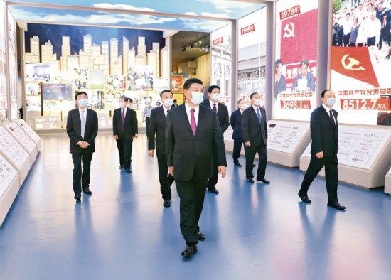 2021年6月18日,黨和國家領(lǐng)導(dǎo)人習(xí)近平、李克強(qiáng)、栗戰(zhàn)書、汪洋、王滬寧、趙樂際、韓正、王岐山等在中國共產(chǎn)黨歷史展覽館參觀“‘不忘初心、牢記使命’中國共產(chǎn)黨歷史展覽”。 新華社記者 鞠鵬/攝