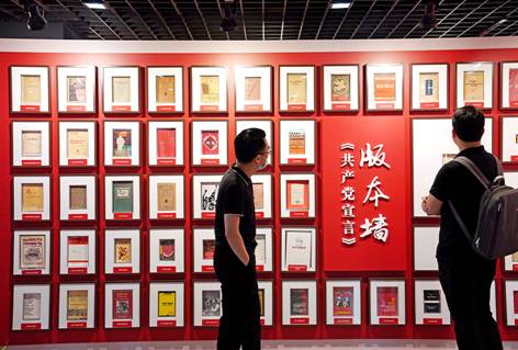 觀眾在上海市檔案館外灘館參觀“真理之甘信仰之源——紀念陳望道首譯《共產(chǎn)黨宣言》中文全譯本100周年主題展”。