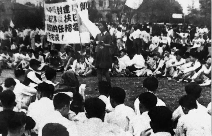 當晚,在校內(nèi)舉行五卅晚會,主題自然是反美扶日。本來安排在子彬院101大教室開。由于去的人太多,坐不下,臨時涌到登輝堂舉行(平時不經(jīng)校方批準,學生是決不能到那里開會的)。這次參加會議的教授很多,有張志讓、陳望道、周谷城、潘震亞、章靳以、方令孺、張孟聞等。張志讓教授第一個發(fā)言,還有好幾個教授講了話。這在以前不曾有過。