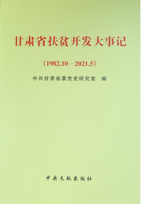 近日,甘肅省委黨史研究室編寫的《甘肅省扶貧開發(fā)大事記(1982.10—2021.5)》由中央文獻出版社出版發(fā)行。