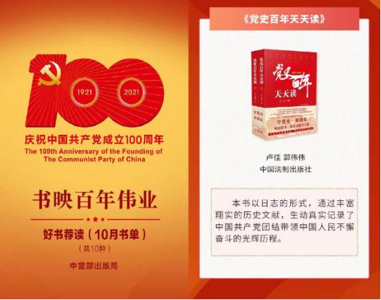 10月12日,由中央黨史和文獻(xiàn)研究院第七研究部編寫的《黨史百年天天讀》一書,入選中宣部“書映百年偉業(yè)——慶祝中國共產(chǎn)黨成立100周年好書薦讀”10月書目。