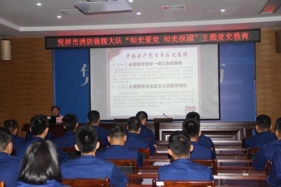 圖為崇左市委黨史研究室主任黃海光到憑祥市消防救援大隊(duì)開展“知史愛黨 知史報(bào)國”主題宣講活動(dòng)