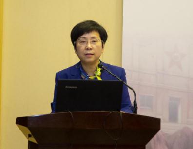 圖為上海市委黨史研究室主任嚴(yán)愛(ài)云作主題演講