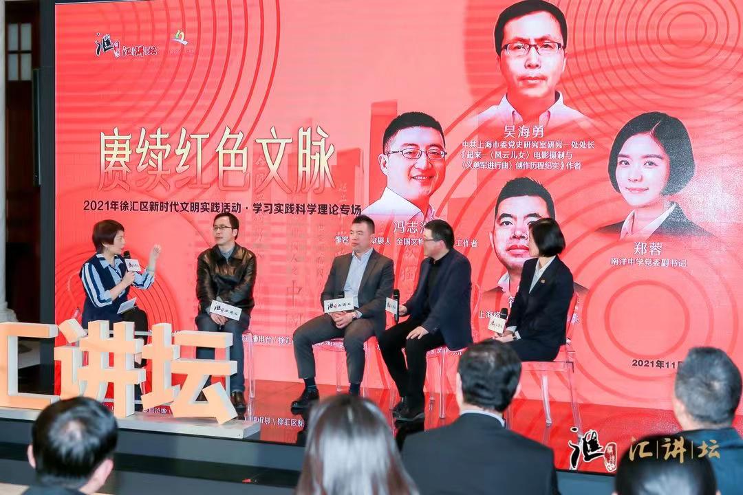授牌儀式后,還舉辦了以“賡續(xù)紅色文脈”為主題的11月“匯講壇”活動(dòng)。在上海市金話筒主持人秦暢的引導(dǎo)下,上海市委黨史研究室研究一處處長(zhǎng)吳海勇等4位嘉賓圍繞“如何實(shí)現(xiàn)紅色文化遺址宣傳保護(hù)及開發(fā)利用”開展了分享。