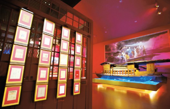 圖為中國共產(chǎn)黨歷史展覽館中嘉興南湖紅船場(chǎng)景展出。 劉新武/攝