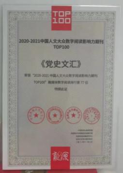 《黨史文匯》入選“2020—2021中國(guó)人文大眾數(shù)字閱讀影響力期刊TOP100”融媒體數(shù)字閱讀排行百?gòu)?qiáng)榜