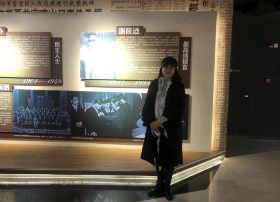謝安立此次來到平湖,是為了更全面地了解家鄉(xiāng),希望能尋找到其祖輩在平湖的足跡,同時表示愿意捐贈其父親留存下來的豐富黨史書籍資料。她先后參觀了平湖市城市展示館、李叔同紀念館等。在平湖名人館,她在父親的展板前駐足良久, 仔細聆聽講解員的詳細講解,并合影留念。