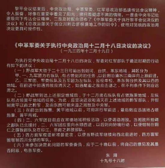 二是中革軍委為執(zhí)行黎平會議決議及時作出行動部署。