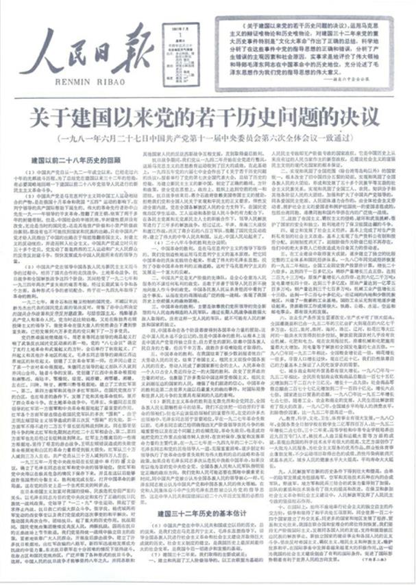 人民日報刊登的《關(guān)于建國以來黨的若干歷史問題的決議》