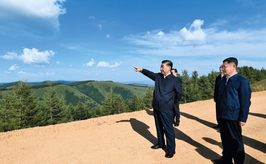 這是23日下午,習(xí)近平在塞罕壩機(jī)械林場(chǎng)月亮山考察 謝環(huán)馳攝/本刊
