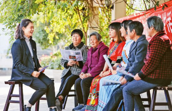 為深入學(xué)習(xí)貫徹黨的十九屆六中全會(huì)精神,浙江省湖州市德清縣雷甸鎮(zhèn)組建“特色宣講小分隊(duì)”,組織鎮(zhèn)村干部、人大代表、青年黨員等深入鄉(xiāng)村、社區(qū)、學(xué)校和企業(yè)等宣講全會(huì)精神。圖為2021年11月25日,德清縣人大代表李良英(左一)為群眾宣講全會(huì)精神。 求是圖片 王樹成/攝
