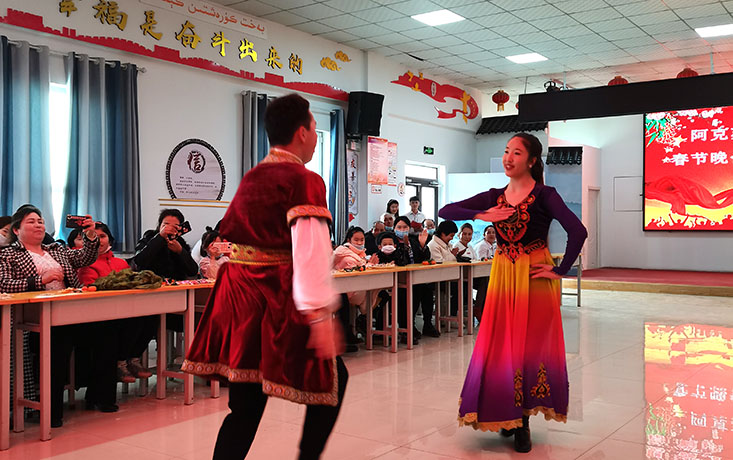 為弘揚(yáng)中華民族優(yōu)秀傳統(tǒng)文化,營(yíng)造歡樂(lè)祥和的節(jié)日氛圍,2022年1月30日,新疆維吾爾自治區(qū)阿克蘇市依干其鎮(zhèn)巴格其村春節(jié)晚會(huì)在村文化活動(dòng)中心舉行。新疆維吾爾自治區(qū)黨委黨史和文獻(xiàn)研究院駐巴格其村工作隊(duì)、村干部和各族村民代表歡聚一堂,共迎新春佳節(jié),共贊美好生活,共度幸福中國(guó)年。