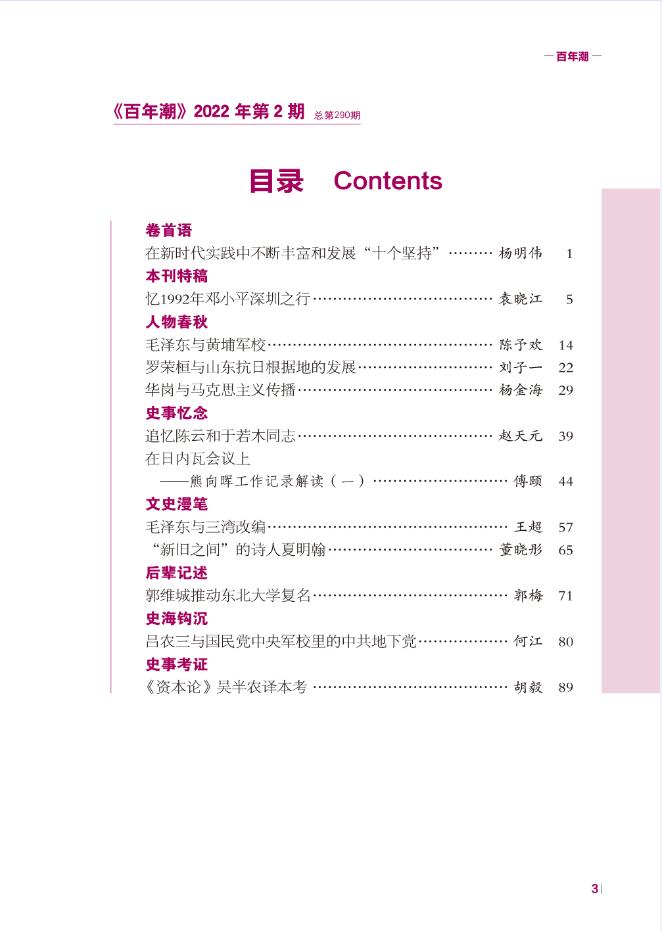《百年潮》2022年第2期目錄
