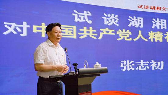 張志初引經(jīng)據(jù)典,從“心憂天下”的文源孕育精神譜系、“上下求索”的文脈催生精神譜系、“實事求是”的文風滋養(yǎng)精神譜系、“不染不妖”的文氣提純精神譜系、“我自橫刀”的文膽融入精神譜系、“經(jīng)世致用”的文道勵行精神譜系等六個方面作了深刻解讀、重點闡述,生動講述了湖湘文化對中國共產(chǎn)黨人精神譜系的貢獻,讓與會人員接受了一次精神的洗禮,從中國優(yōu)秀文化中汲取砥礪奮進的力量。