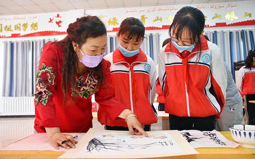 活動(dòng)現(xiàn)場(chǎng),工作隊(duì)員、村干部和60余名各族村民代表歡聚一堂,其樂融融。大家一起包粽子、敘家常,了解端午節(jié)歷史,互相講述和端午節(jié)有關(guān)的小故事。在阿克蘇地區(qū)書畫協(xié)會(huì)老師們的現(xiàn)場(chǎng)指導(dǎo)下,各族青少年學(xué)生對(duì)學(xué)習(xí)中國(guó)書法和國(guó)畫展現(xiàn)出濃厚的學(xué)習(xí)興趣,并現(xiàn)場(chǎng)創(chuàng)作了多幅書畫作品。