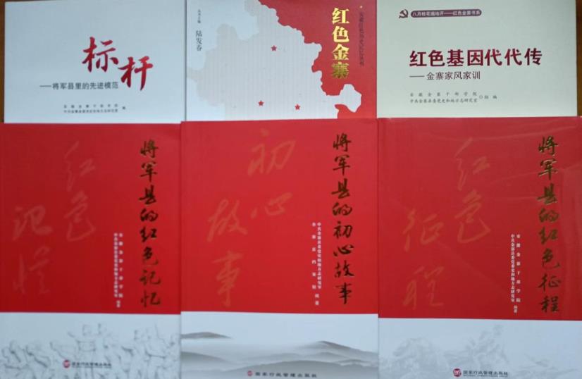 6年來(lái),金寨縣委、縣政府和68萬(wàn)老區(qū)人民時(shí)刻牢記總書記的諄諄教導(dǎo),深入學(xué)習(xí)、深刻領(lǐng)會(huì),認(rèn)真做好傳承紅色基因、賡續(xù)紅色血脈的各項(xiàng)工作,取得了令人矚目的成績(jī)。僅安徽省金寨干部學(xué)院、金寨縣委黨史和地方志研究室兩個(gè)單位就編纂出版了包括上述《將軍縣的初心故事》《將軍縣的紅色傳承》《將軍縣的紅色征程》《將軍縣的紅色記憶》等紅色文化系列叢書和《紅色金寨》《熱血忠魂》《紅色基因代代傳》《金寨紅色精典故事》《中國(guó)共產(chǎn)黨金寨縣歷史大事記(1921---2021)》在內(nèi)的30多種紅色文化書籍。