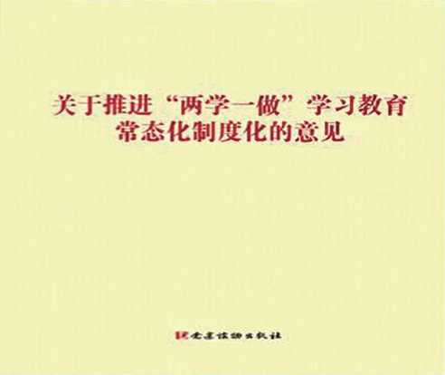 推進(jìn)學(xué)習(xí)教育常態(tài)化制度化。2017年3月,中共中央辦公廳印發(fā)了《關(guān)于推進(jìn)“兩學(xué)一做”學(xué)習(xí)教育常態(tài)化制度化的意見》。意見健全完善常態(tài)化開展“兩學(xué)一做”學(xué)習(xí)教育的制度載體。把學(xué)黨章黨規(guī)、學(xué)系列講話作為各級黨委(黨組)理論學(xué)習(xí)中心組學(xué)習(xí)的主要內(nèi)容。把“兩學(xué)一做”學(xué)習(xí)教育納入黨支部“三會一課”等基本制度。4月16日,中央組織召開推進(jìn)“兩學(xué)一做”學(xué)習(xí)教育常態(tài)化制度化工作座談會,要求各級黨委認(rèn)真落實(shí)主體責(zé)任,把“兩學(xué)一做”學(xué)習(xí)教育常態(tài)化制度化作為深化全面從嚴(yán)治黨的重要任務(wù),以學(xué)習(xí)教育的新成效迎接黨的十九大勝利召開。此后,“兩學(xué)一做”學(xué)習(xí)教育轉(zhuǎn)入常態(tài)化制度化推進(jìn)階段。