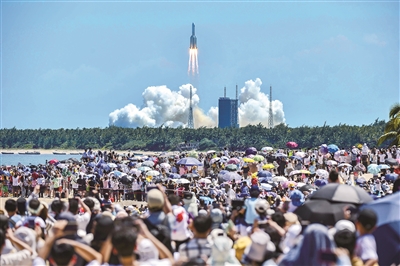 圖為7月24日,搭載問(wèn)天實(shí)驗(yàn)艙的長(zhǎng)征五號(hào)B遙三運(yùn)載火箭,在海南文昌航天發(fā)射場(chǎng)成功發(fā)射。(圖片來(lái)源:視覺(jué)中國(guó))