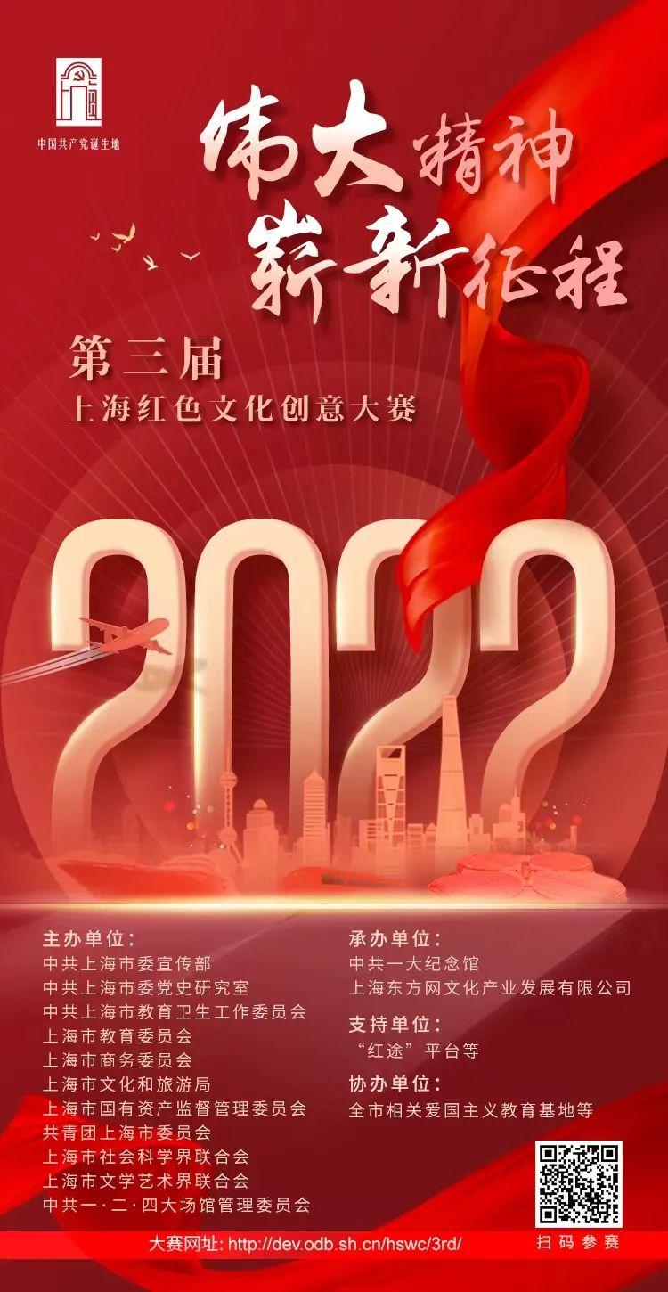 大賽由上海市委宣傳部、市委黨史研究室、市教衛(wèi)工作黨委、市教委、市商務委、市文旅局、市國資委、團市委、市社科聯(lián)、市文聯(lián)、中共一·二·四大場館管理委員會聯(lián)合主辦。今年8月至11月期間開展作品征集和集中評選,截稿日期為10月14日,12月將舉行頒獎活動與成果展示。參賽者可通過掃描二維碼或進入大賽官網提交作品。