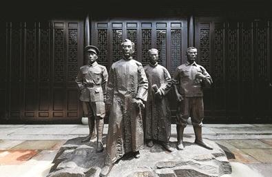 中共杭州小組紀(jì)念館新館內(nèi),徐梅坤、于樹德、金佛莊、沈干城四人雕像