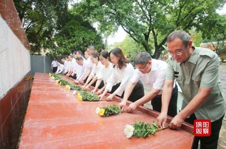 紀(jì)念活動(dòng)現(xiàn)場(chǎng),市直單位部分干部職工代表面向莊嚴(yán)肅穆的紀(jì)念碑,向著長(zhǎng)眠于此的抗戰(zhàn)英雄行三鞠躬禮,寄托對(duì)英雄的哀思,表達(dá)對(duì)他們的深切緬懷和崇高敬意。