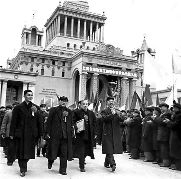 1956年1月,上海市在中蘇友好大廈舉行資本主義工商業(yè)申請公私合營大會。